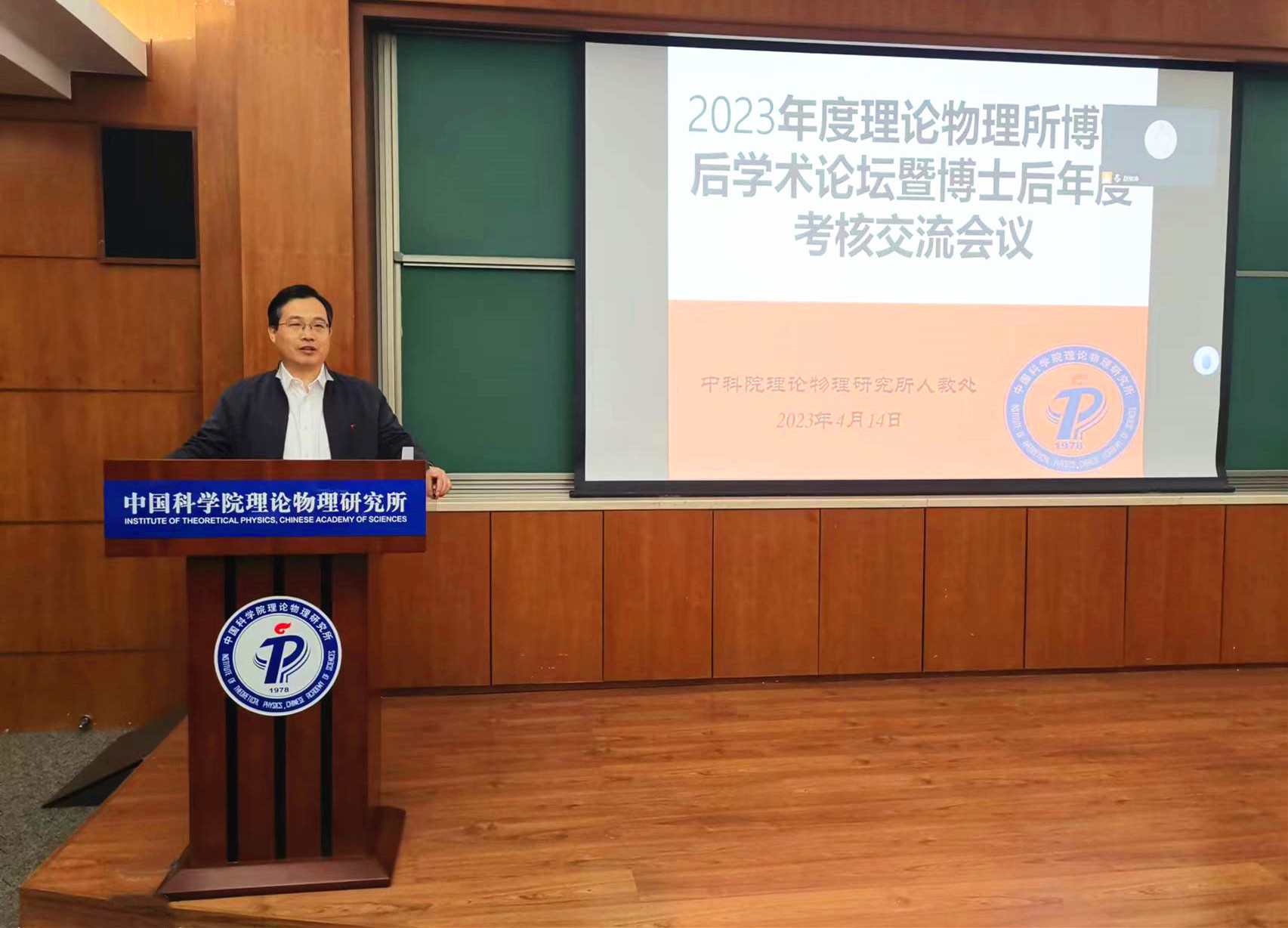 4月14日,理论物理所成功举办2023年度博士后学术论坛暨博士后年度考核交流会议。本次论坛采用线下线上相结合的方式进行,博士后、合作导师及部分研究生共计30余人参加。副所长周善贵研究员出席论坛并致开幕辞。