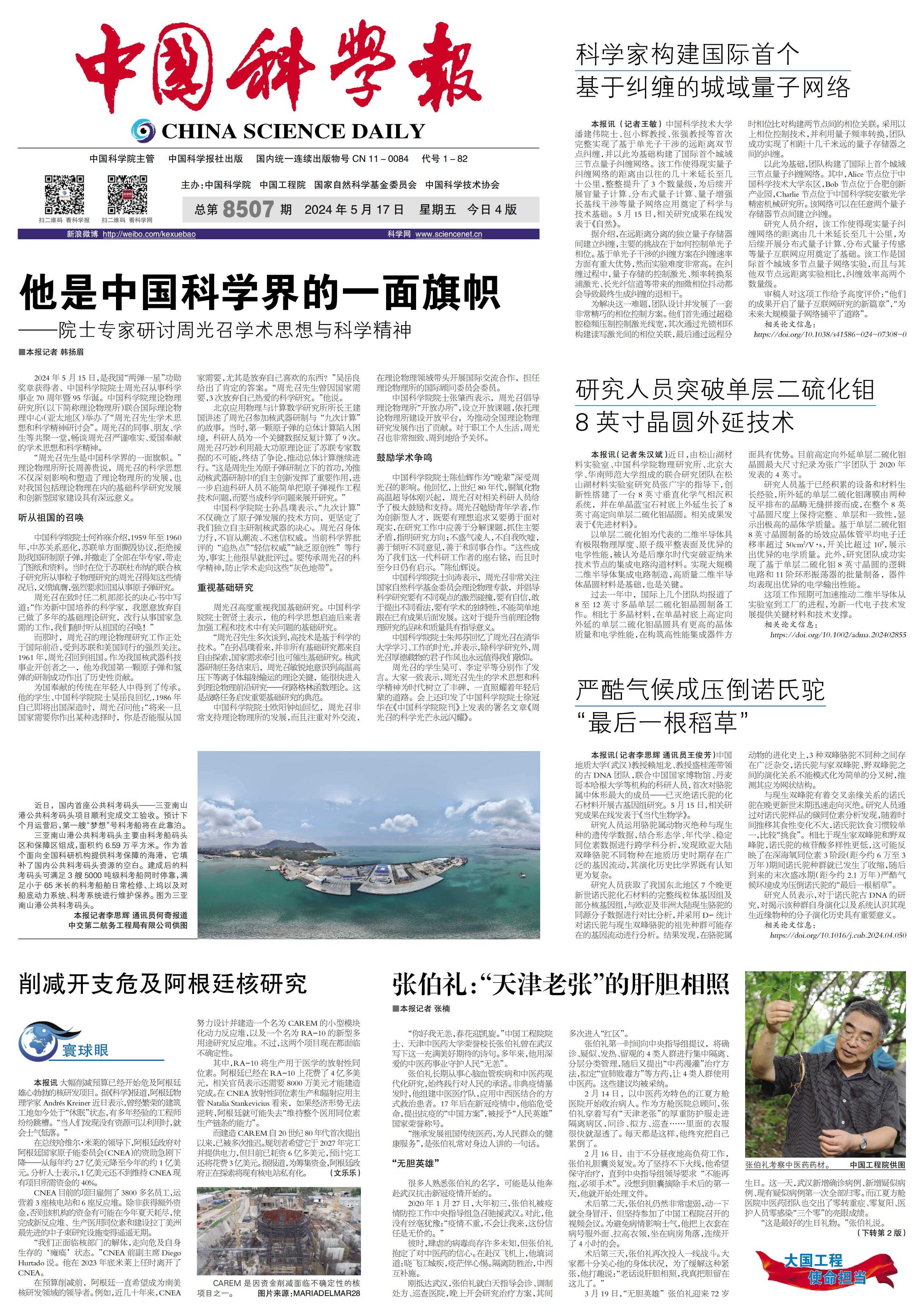 载于《中国科学报》 (2024-05-17 第1版 要闻,本报记者 韩扬眉)
