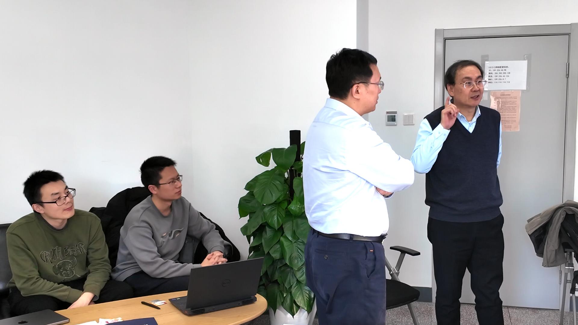 组会讨论,苏刚(右一)、李伟(右二)。戚金葆拍摄