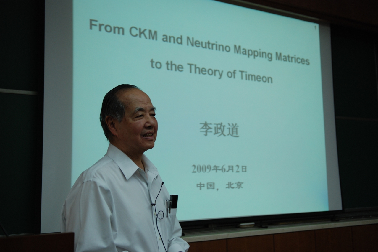 诺贝尔奖得主李政道先生于2009年6月2日在理论物理所前沿科学论坛上作了题为“From CKM and Neutrino Mapping Matrices to the Theory of Timeon”的学术报告。