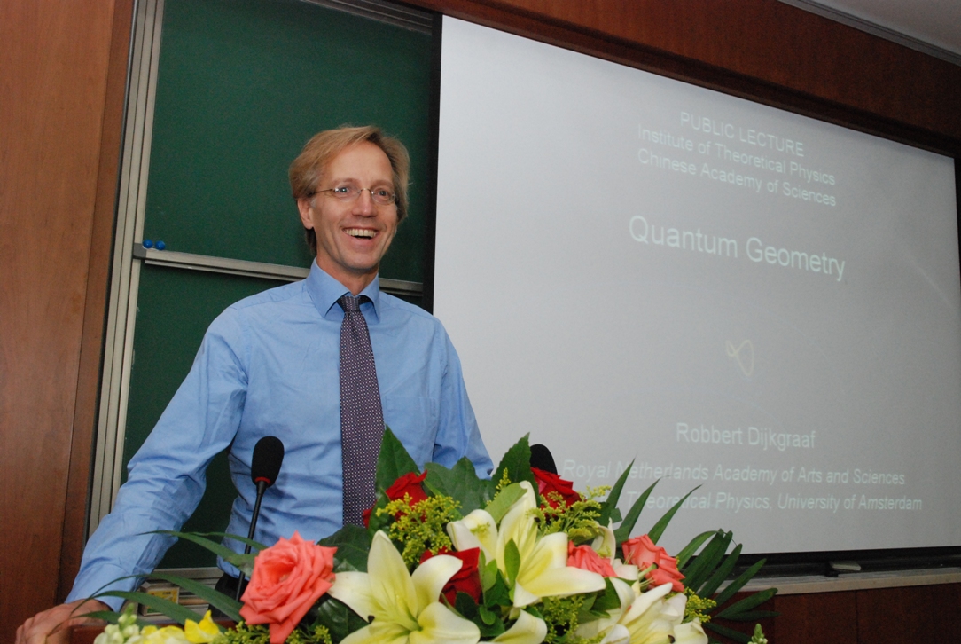 9月14日上午,荷兰皇家科学院院长,国际科学院委员会(IAC)联合主席Robbert Dijkgraaf教授在IAC执行主席和荷兰驻华使馆官员的陪同下访问我所,并分别在理论物理所前沿科学论坛和专题学术报告上做了题为"Quantum Geometry"和"Superconformal Gauge Theories, Liouville Theory and Matrix Models"的两场报告。报告会分别由理论物理所所长吴岳良院士和李淼研究员主持。