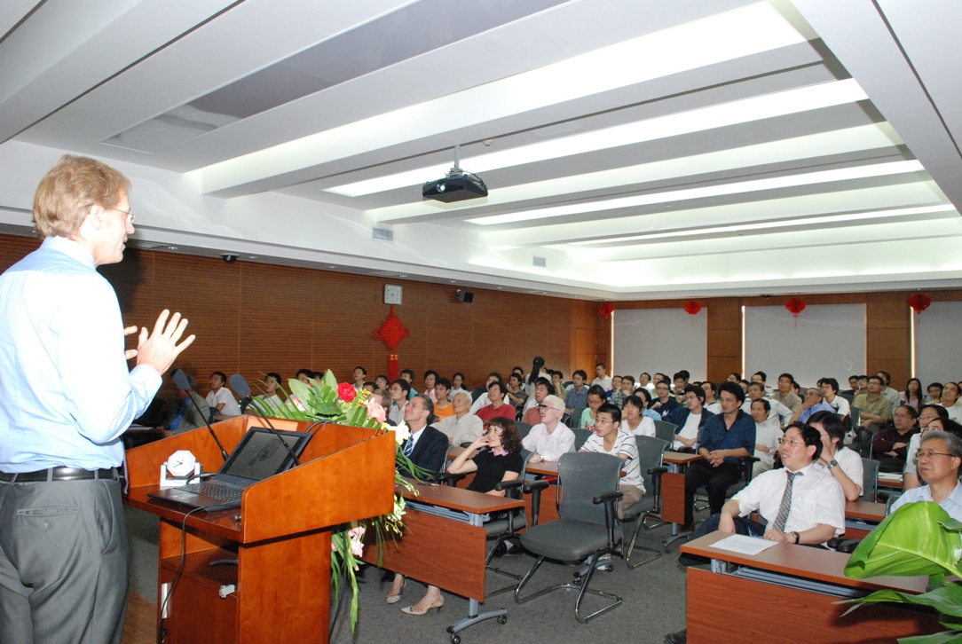 Robbert Dijkgraaf教授,阿姆斯特丹大学数学物理学教授、荷兰皇家科学院院士、国际科学院委员会联合主席,自2008年5月1日起担任荷兰皇家科学院(KNAW)院长。曾于2001年获荷兰物理学会物理学奖和2003年苏国斯宾诺莎奖(荷兰最高科学奖)。主要从事弦论、量子引力和数学与粒子物理交叉方面的研究,在拓扑弦论和矩阵模型方面的工作尤为突出。Robbert Dijkgraaf教授的此次来访受到了IAC联合主席、中国科学院院长路甬祥的亲切会见。