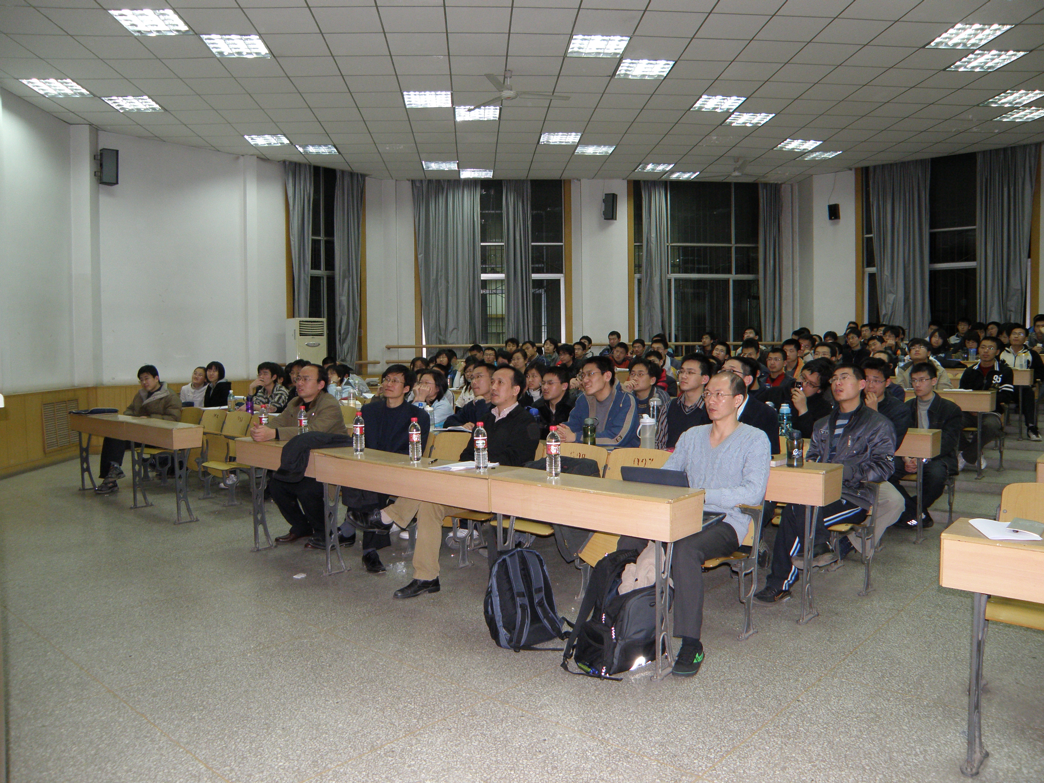 2009年3月13日晚上,陈晓松副所长、刘纯研究员、覃绍京研究员在山东大学老校区为物理学院的本科生作了一场“物理学前沿专题讲座”,讲座由物理学院院长粱作堂主持,陈晓松副所长作了《理论物理研究所情况介绍》的报告。讲座结束后,山东大学物理学院的学生就自己感兴趣的学术和考研问题进行了提问。