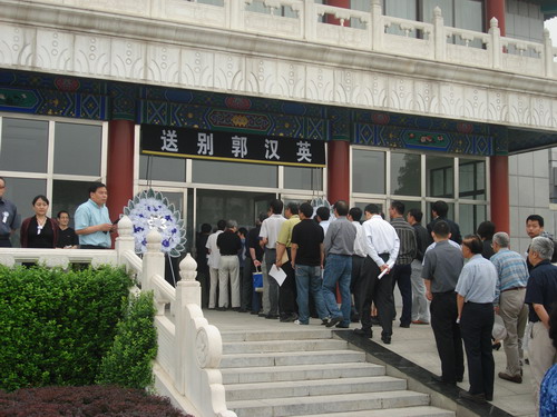 上午9点,原中纪委驻中科院纪检组组长、党组成员王庭大,北京分院党组常务副书记、副院长项国英,以及有关兄弟单位的领导,郭汉英生前好友、同事、学生及亲属约500人参加了送别仪式。