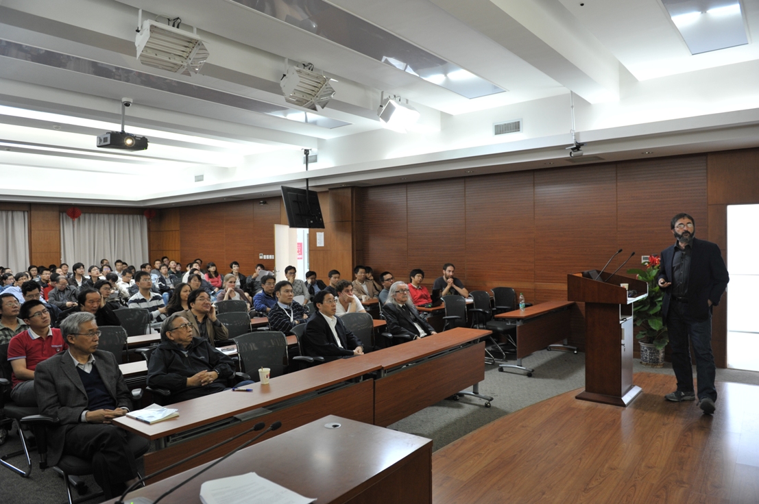 10月14日下午,Quevedo博士在理论物理所中关村交叉科学论坛上作了题为“ICTP and China,Strings and Physics”的报告,报告会由吴岳良所长主持。报告会上,吴岳良所长对Quevedo博士的来访表示热烈欢迎,并简要介绍了理论物理所和卡弗里理论物理研究所的概况和发展目标。随后,在 Quevedo博士的报告上, 对ICTP的建立过程、研究方向、项目运行等情况进行了简要介绍,并重点介绍了参加ICTP项目的中国科学家及其取得的成就,希望双方能在将来展开更深入广泛的交流与合作。最后,Quevedo博士作了题为 “Strings and Physics”的精彩的学术报告。