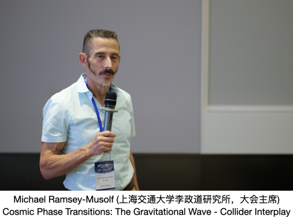会议开幕式由中国科学院理论物理研究所于江浩研究员(大会联合主席)主持,上海交通大学李政道研究所Michael Ramsey-Musolf教授(大会主席)致开幕词并作开幕学术报告。在开幕词中,他首先对与会专家学者的到来表示热烈欢迎,并对中国科学院理论物理研究所王少江副研究员(大会执行主席)及其会务团队成员的组织工作表示感谢。他特别提到本次会议是2023年上海粒子物理与宇宙学研讨会(SPCS 2023)和2024年成都粒子物理与宇宙学研讨会(CPCS 2024)的延续,并欣喜地看到粒子物理和宇宙学的交叉融合方向在近年来的蓬勃发展,期待未来能够将该系列会议继续举办下去。